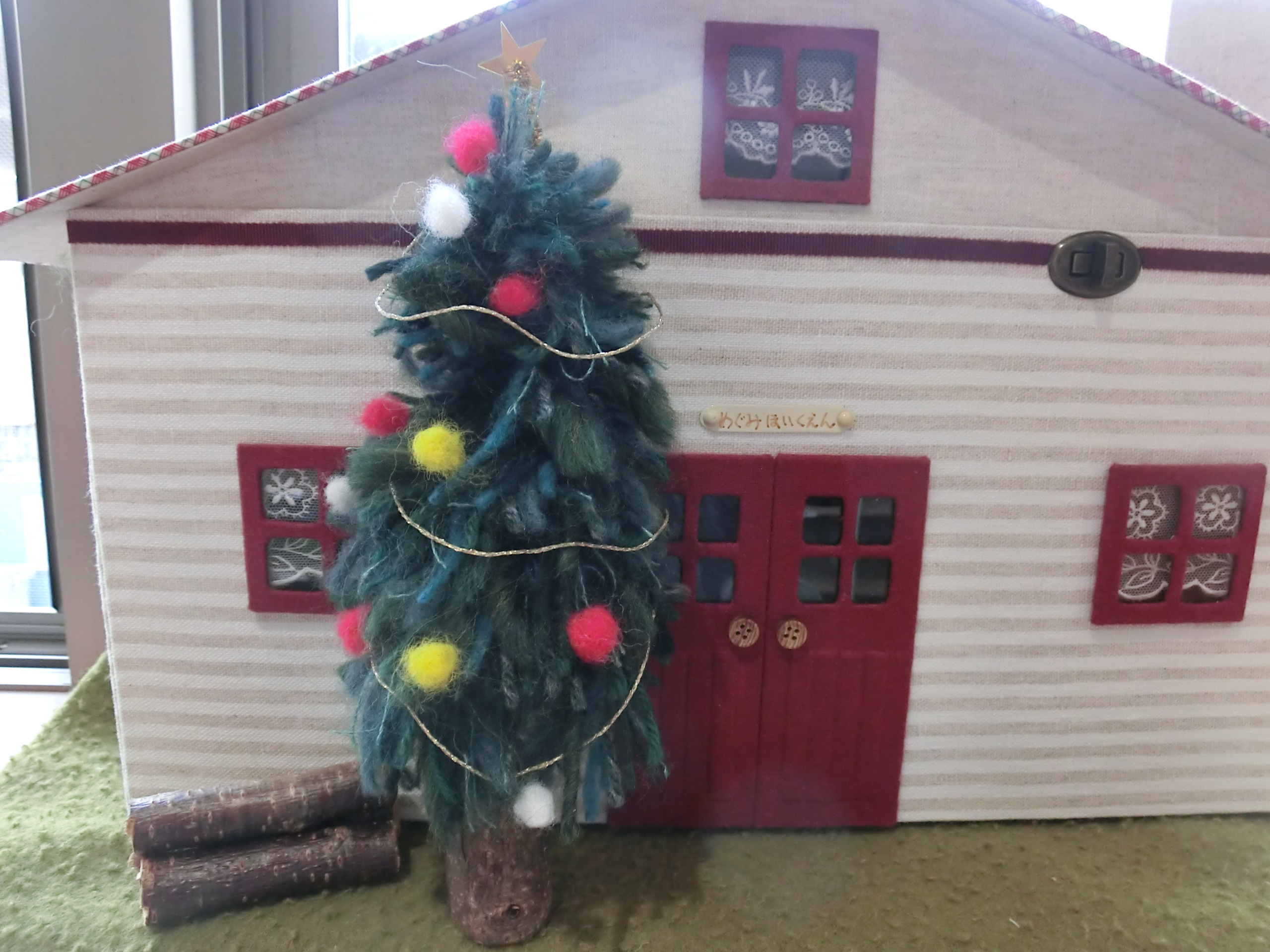 大きさは約23㎝。飾りは羊毛ボールで、ほっこり素朴なクリスマスツリーです。