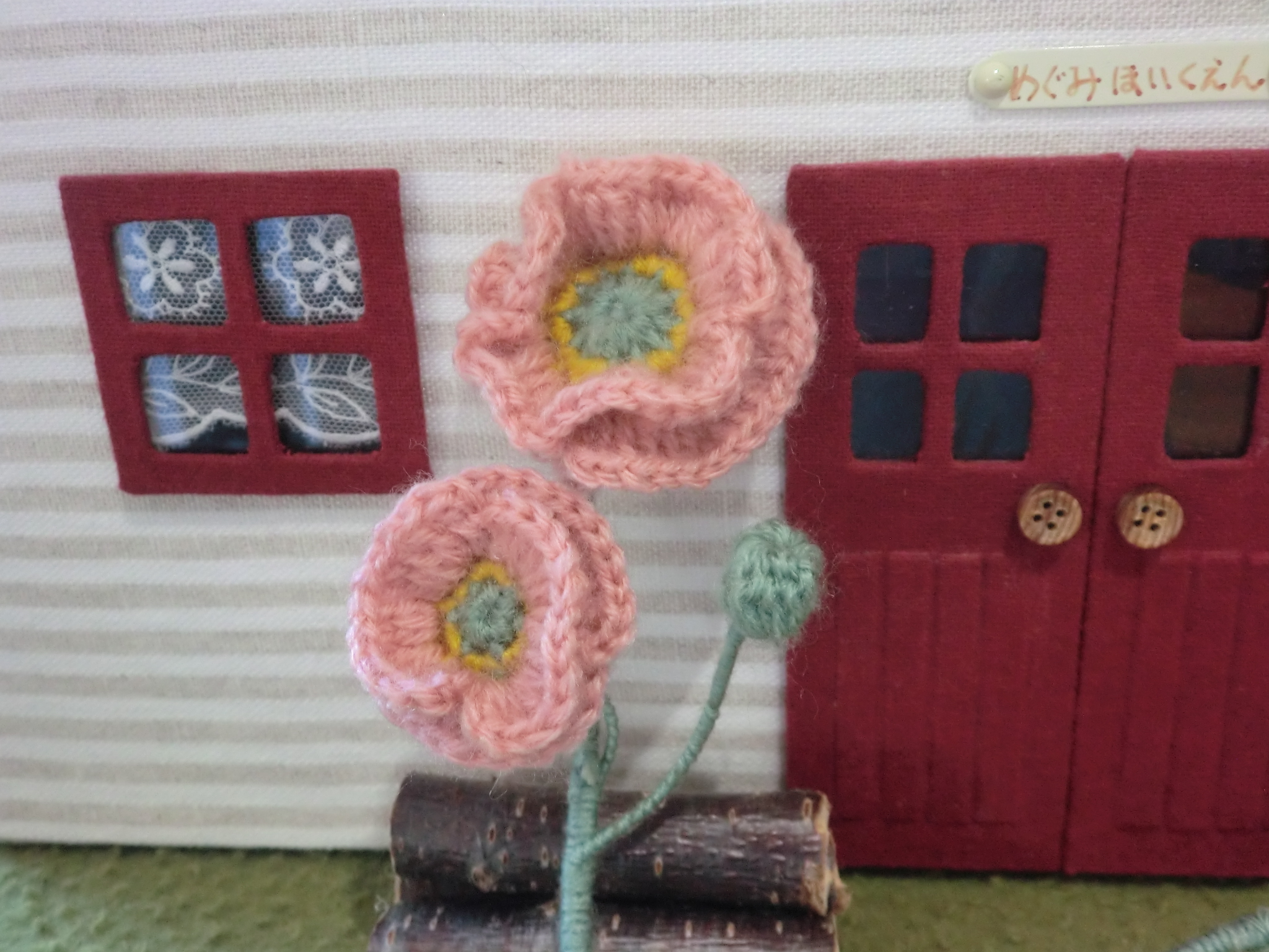 今月は、ポピーです。(材料費1本90円)毛糸持ち込みでも大丈夫です(その場合は、毛糸に合ったかぎ針をお持ち下さい)。
